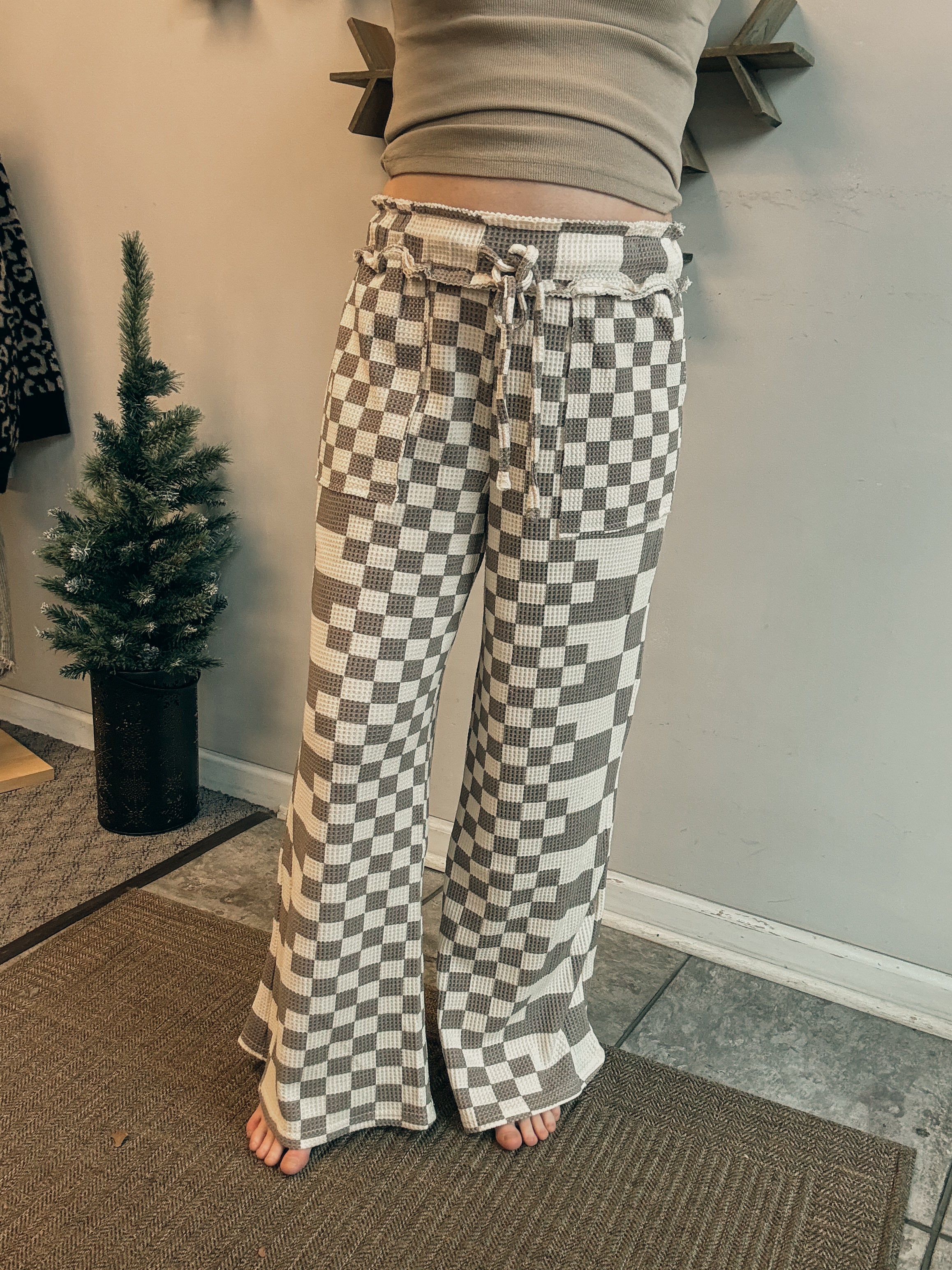 Checker Print Waffle Pant