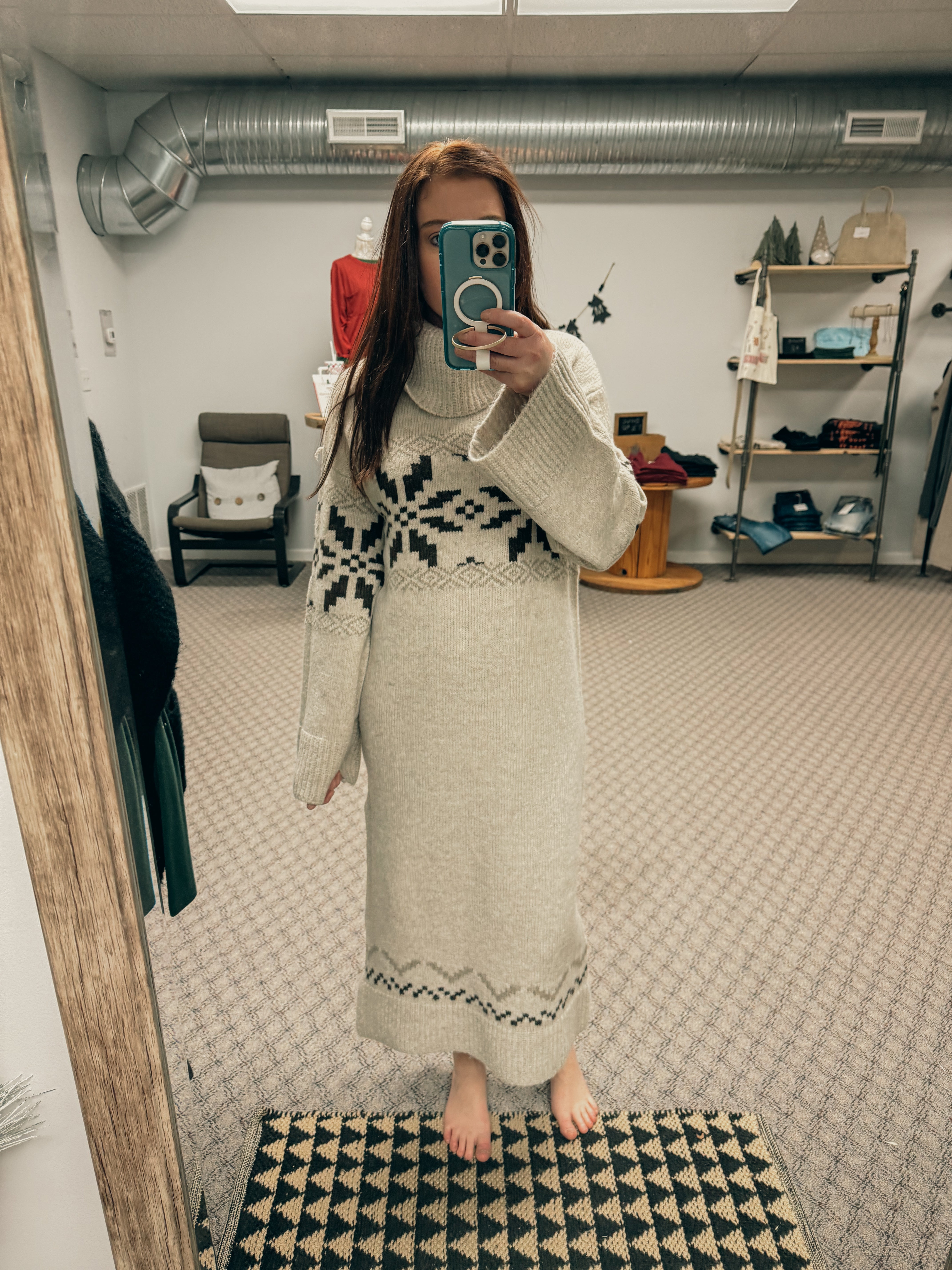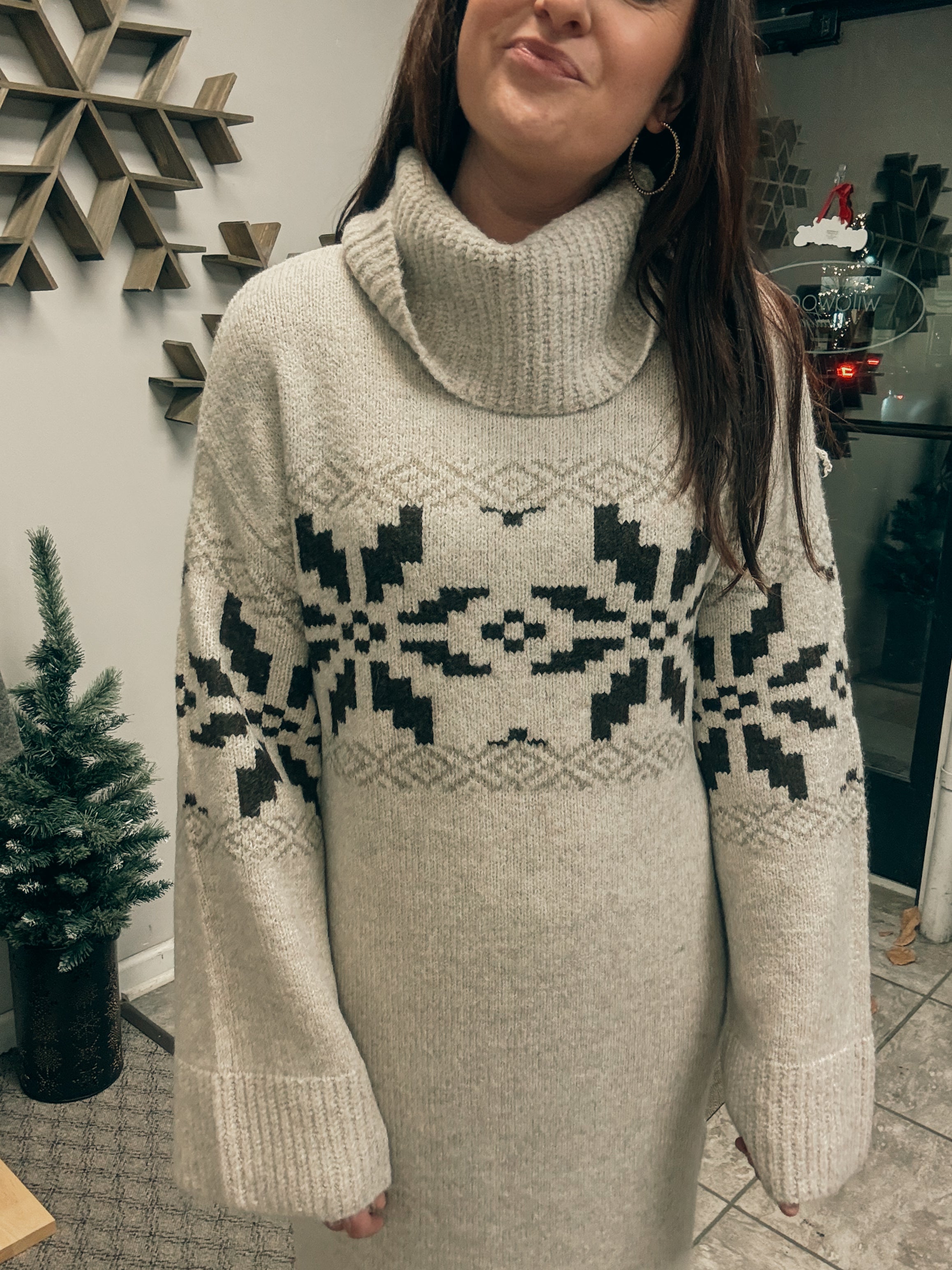 -soft alpine print sweater dress