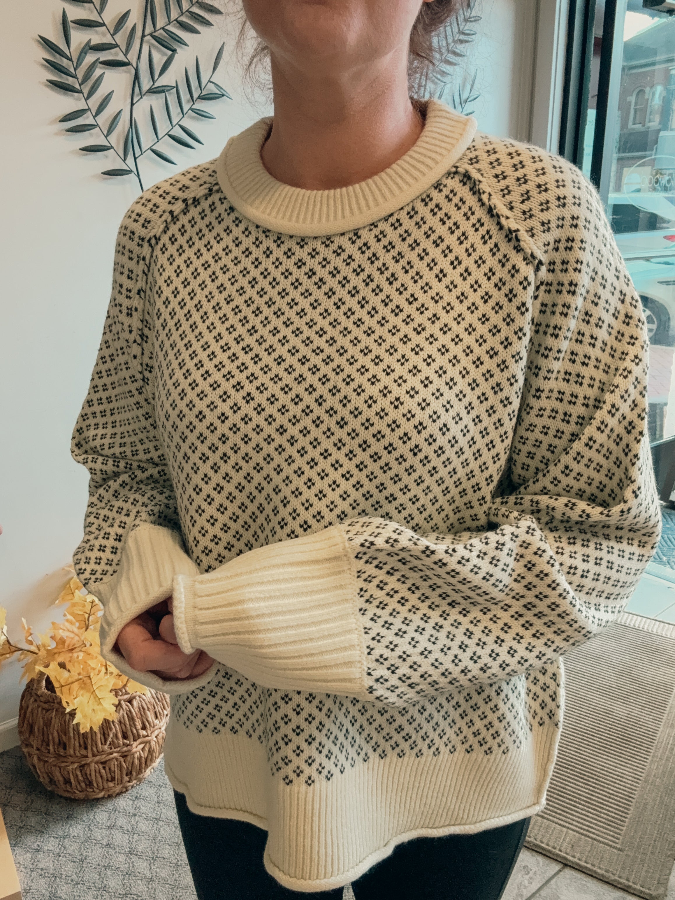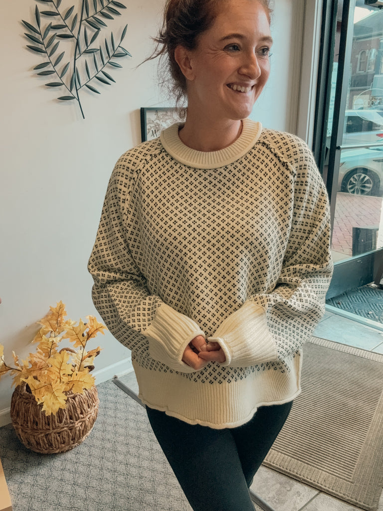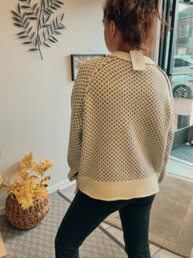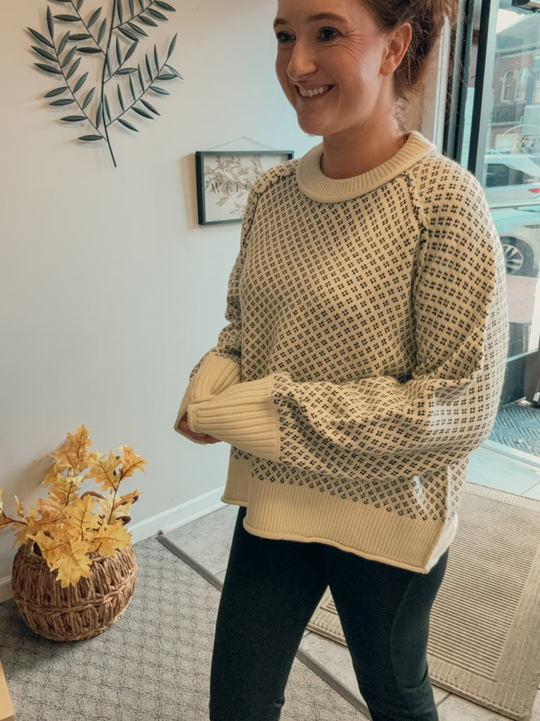 -printed ribbed accent sweater