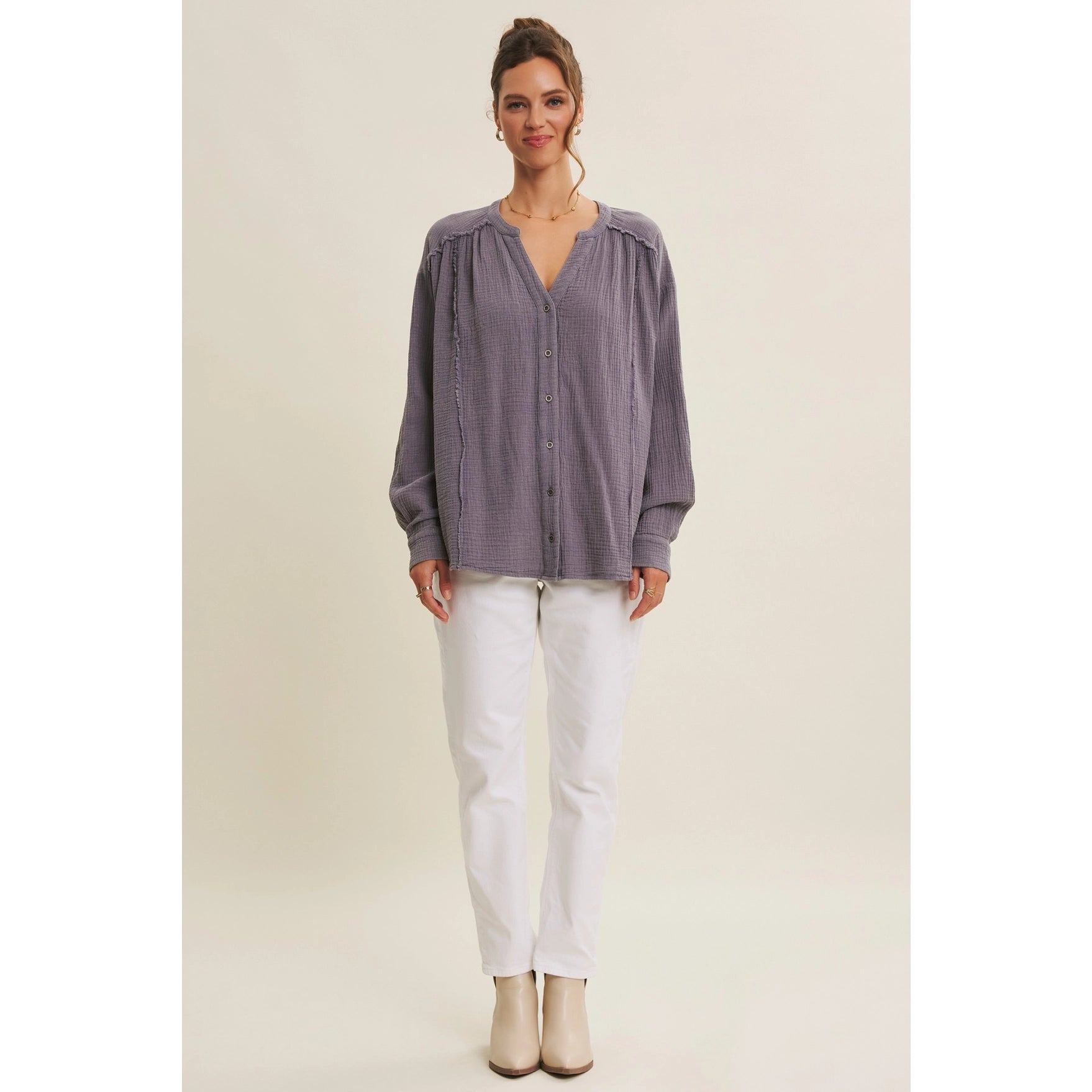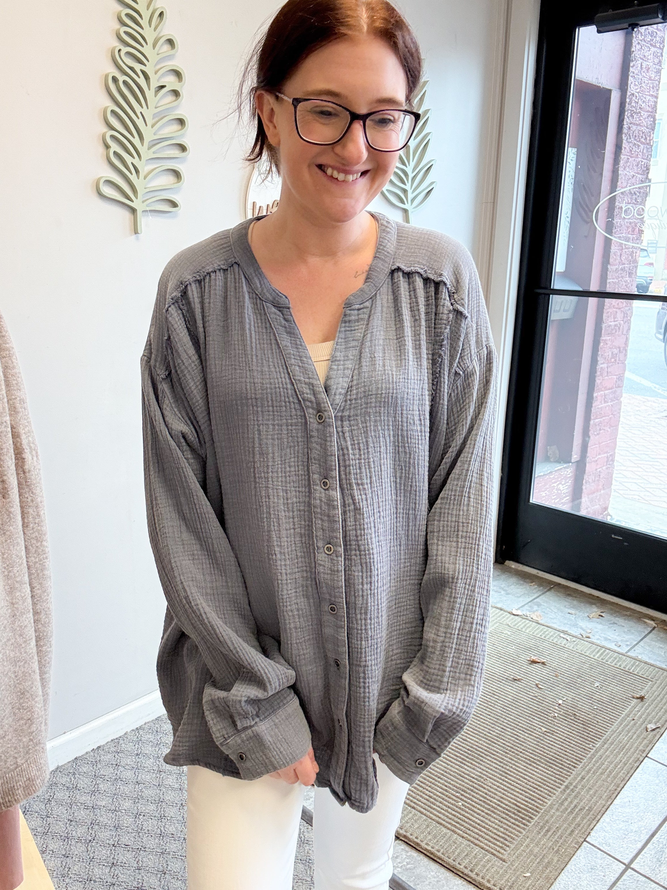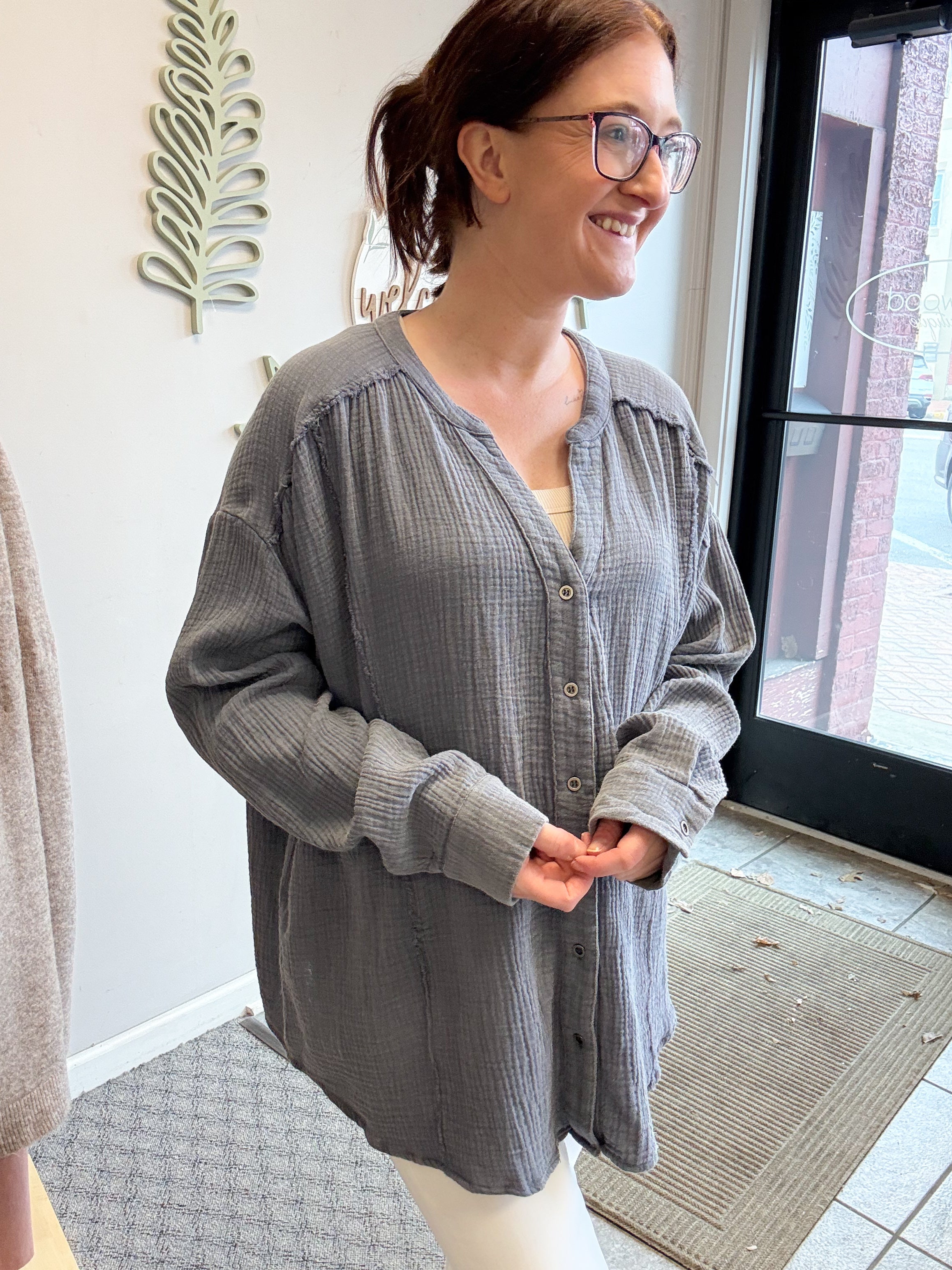 -oversused button down gauze top