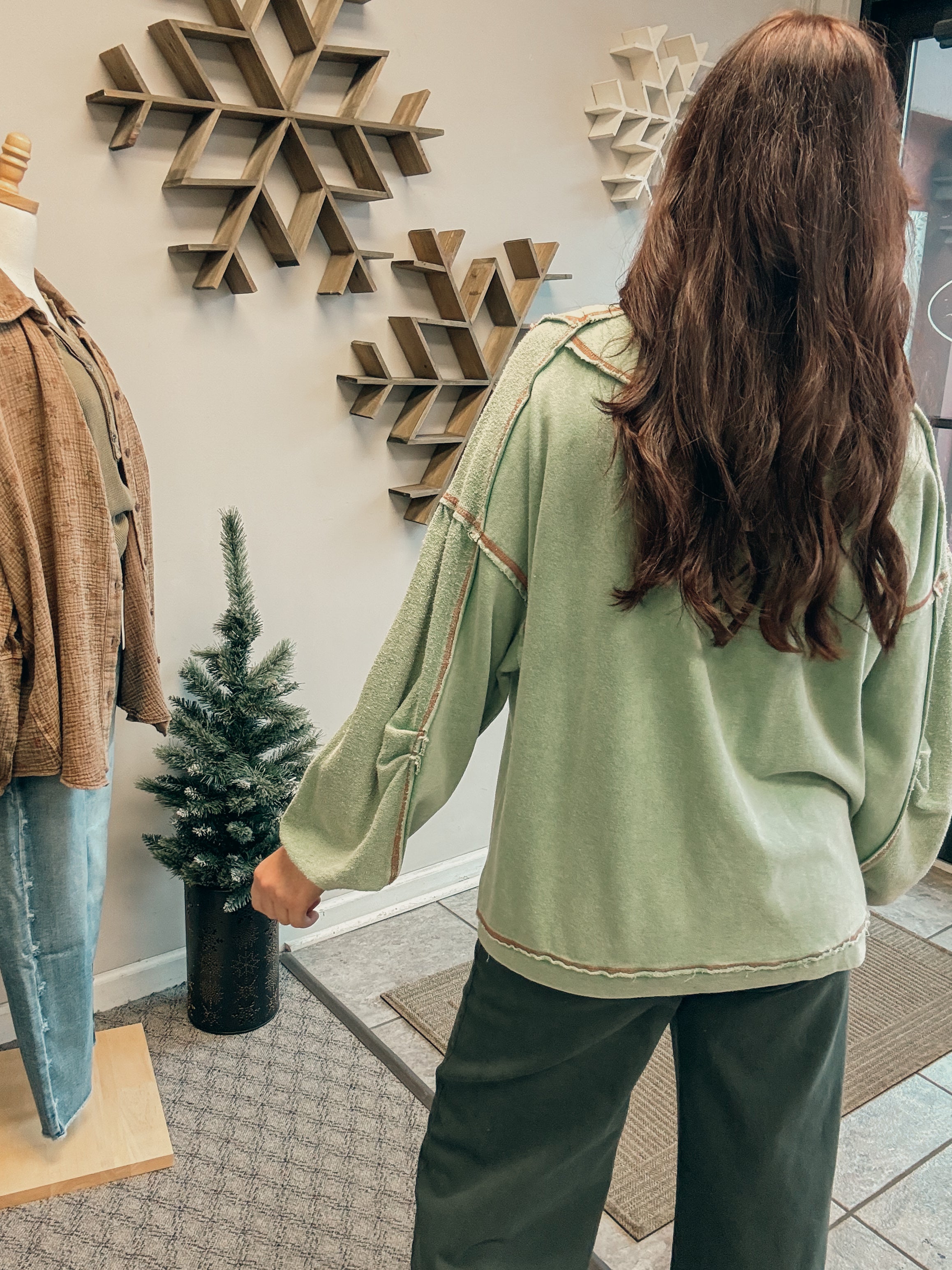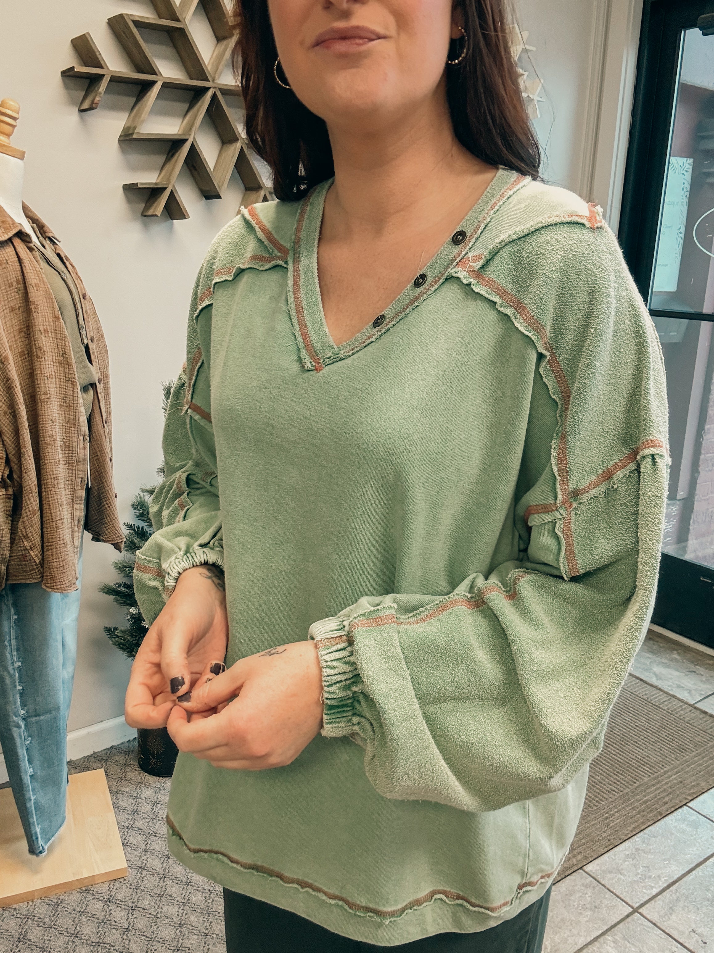-button details washed Terry pullover