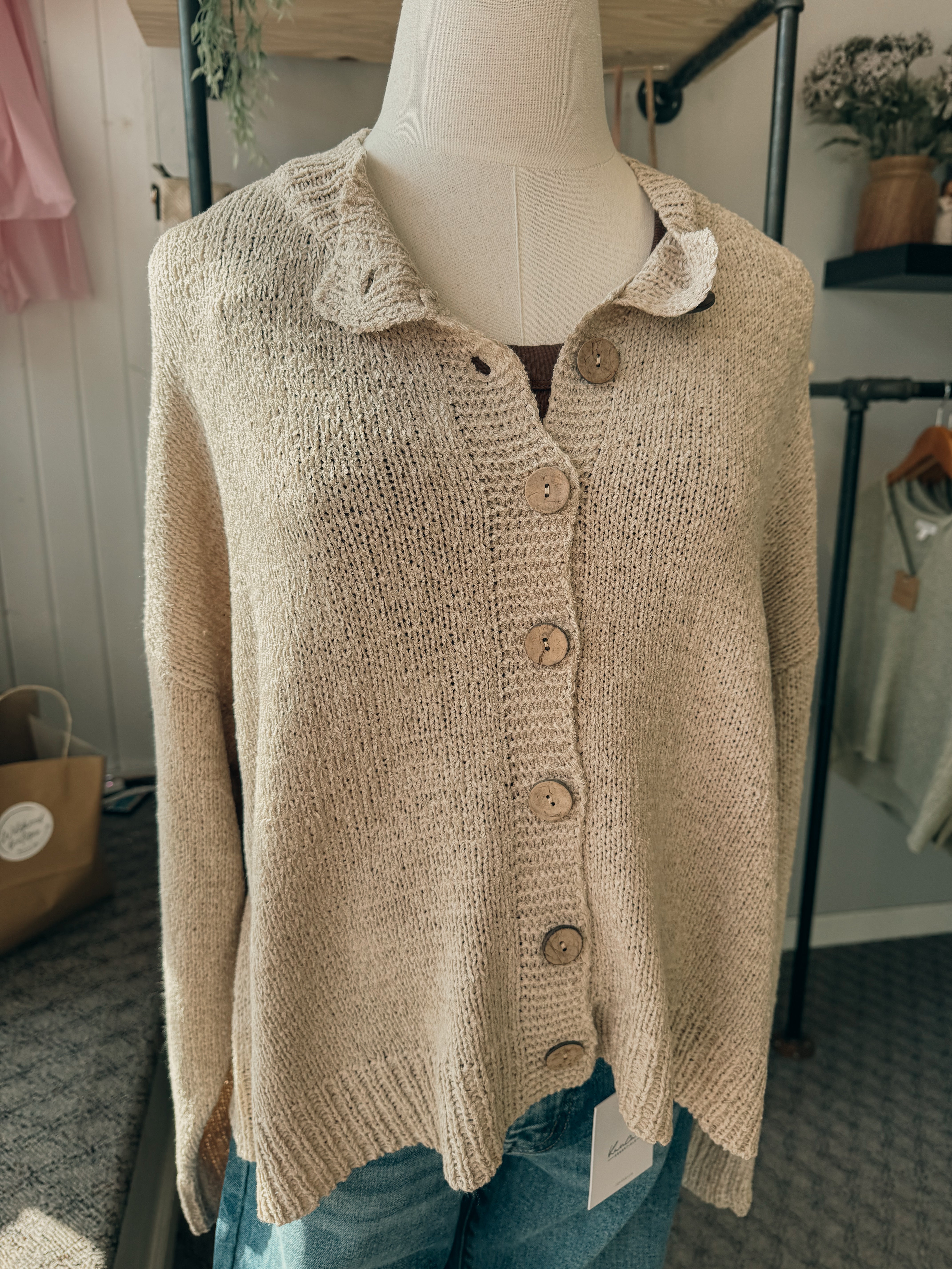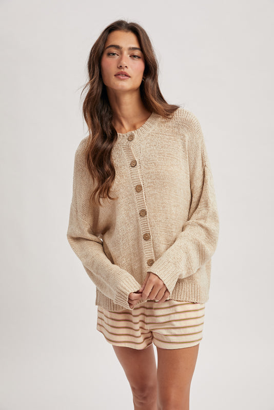 LIGHTWEIGHT BUTTON-UP SWEATER CARDIGAN- FUNCTIONAL BUTTONS