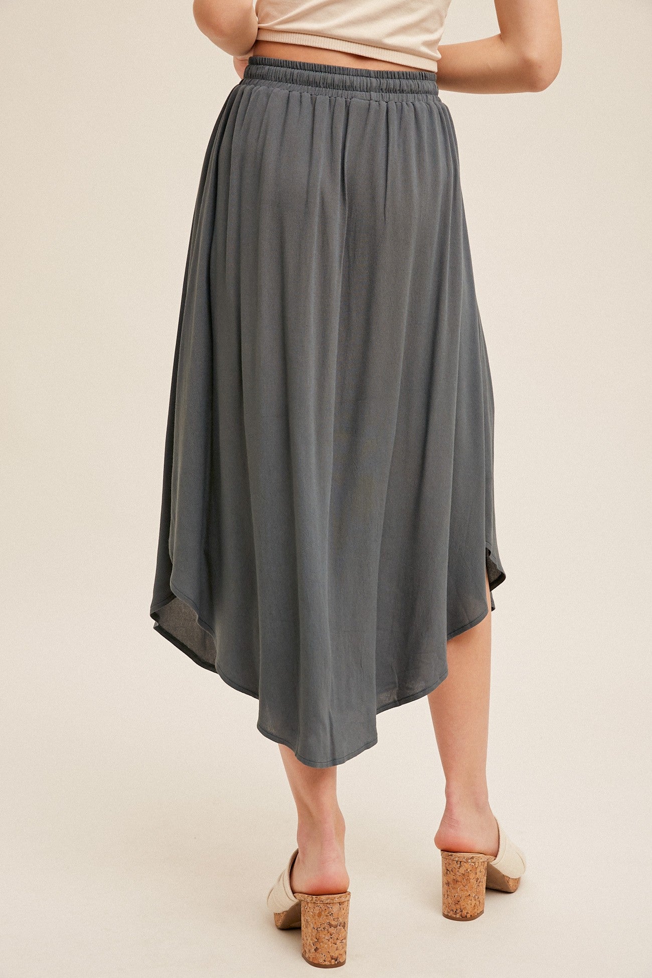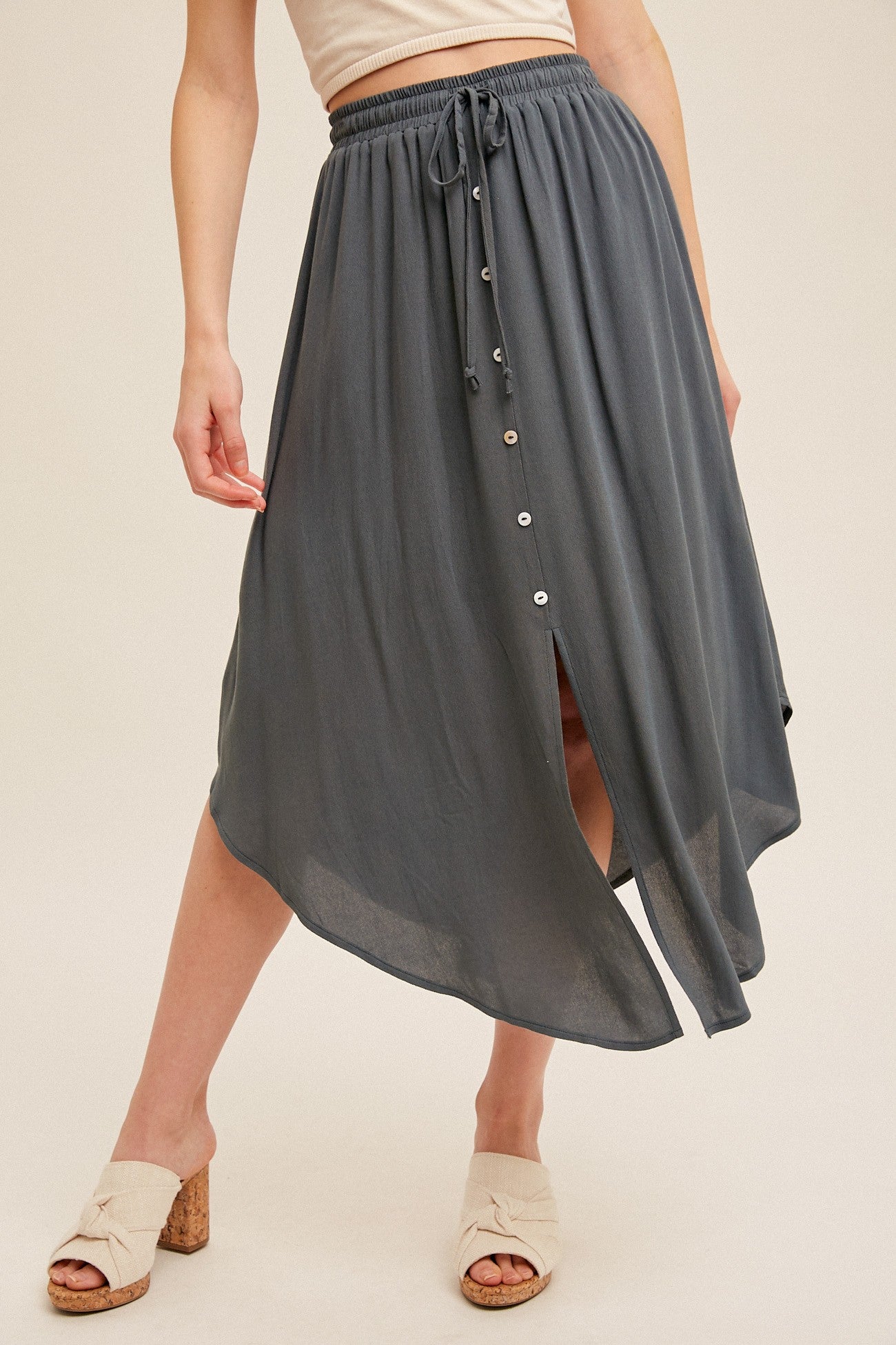 Scoop Hem Button Skirt