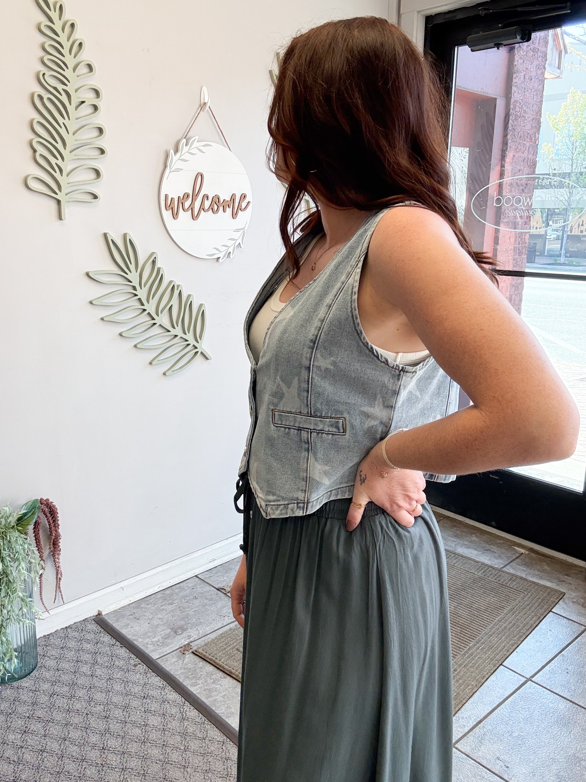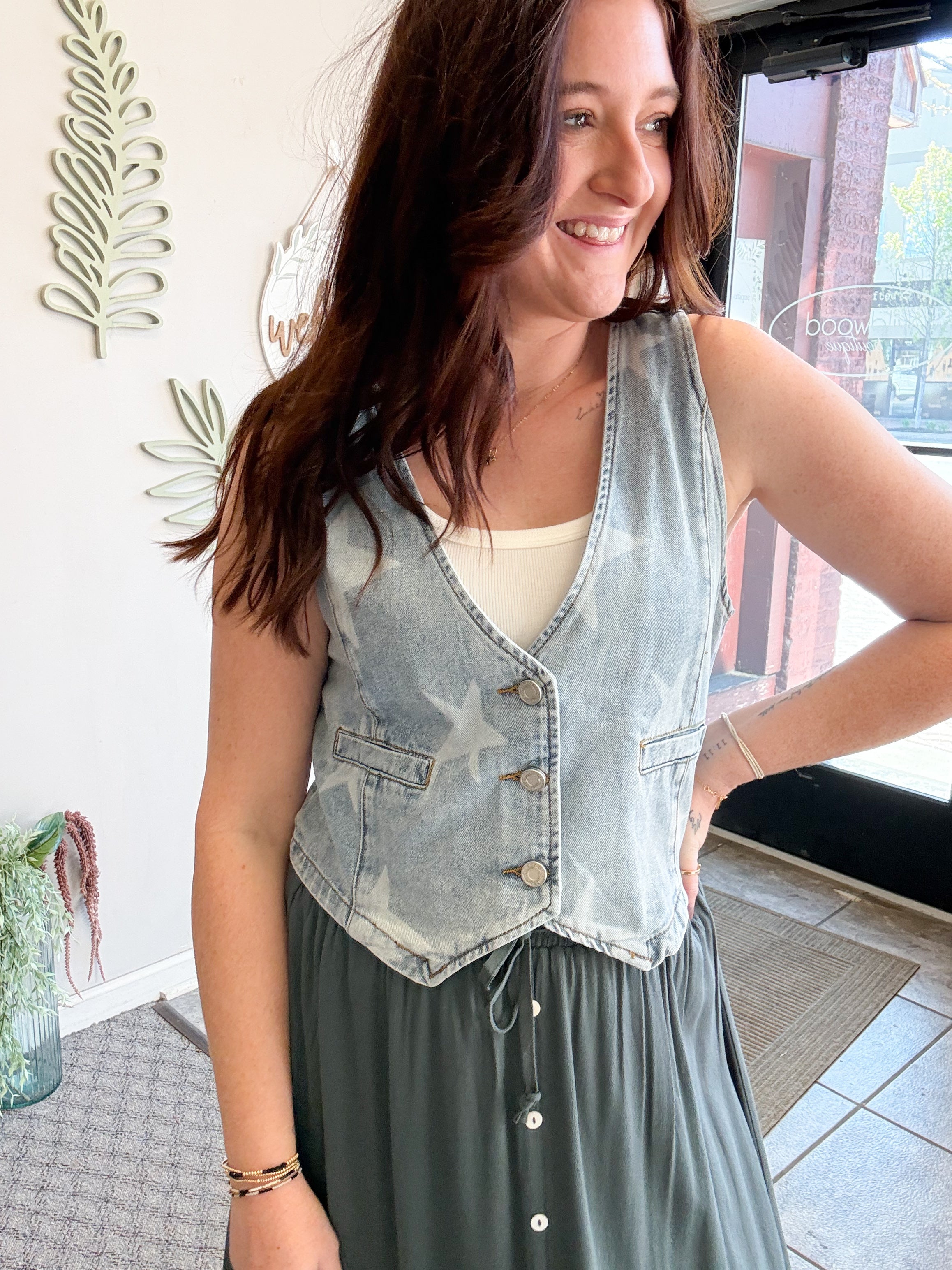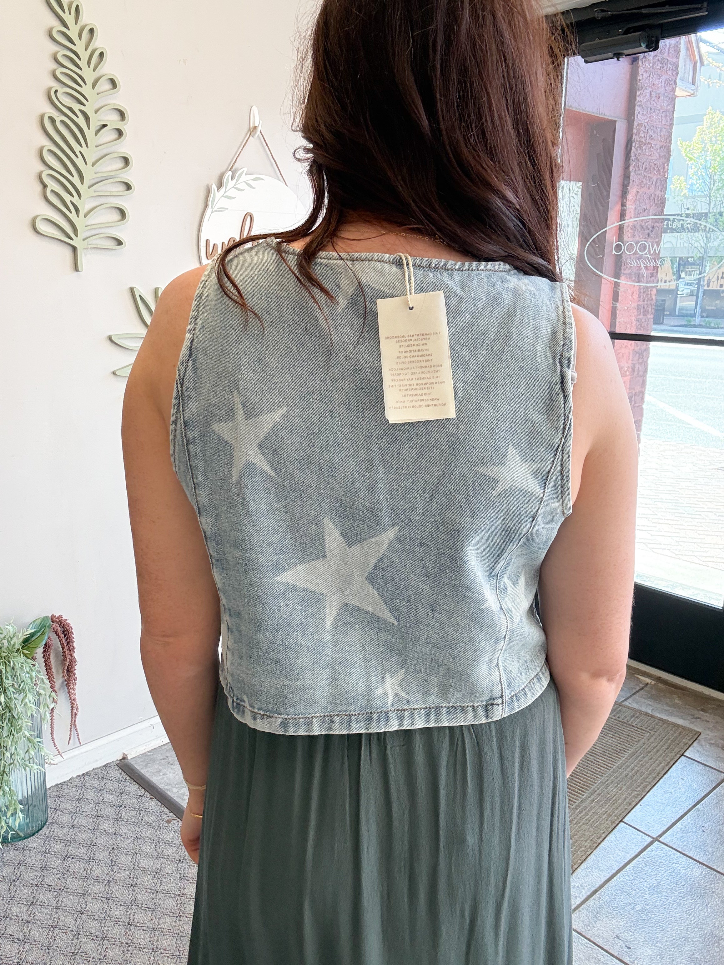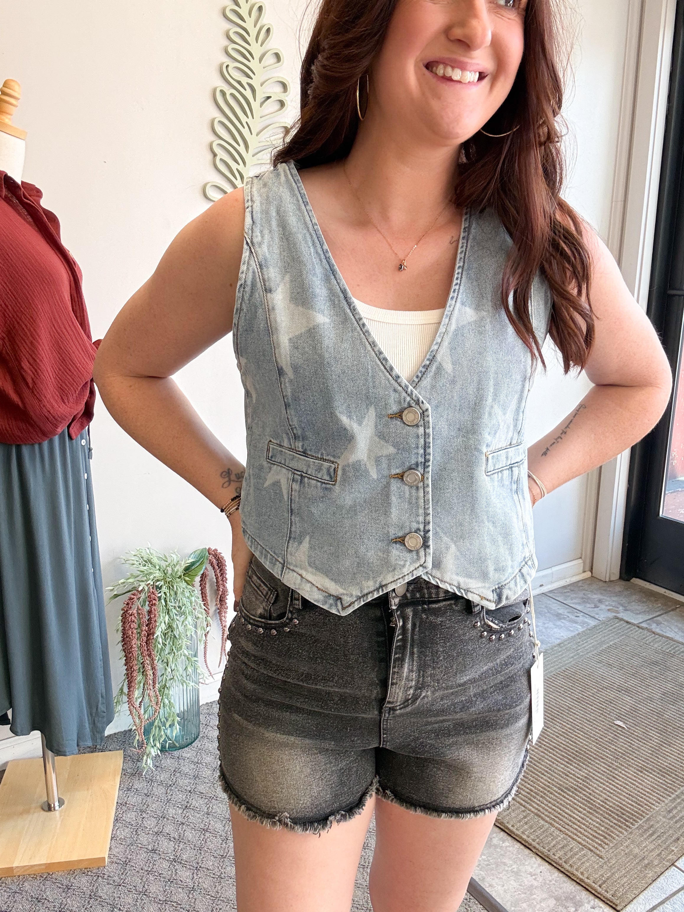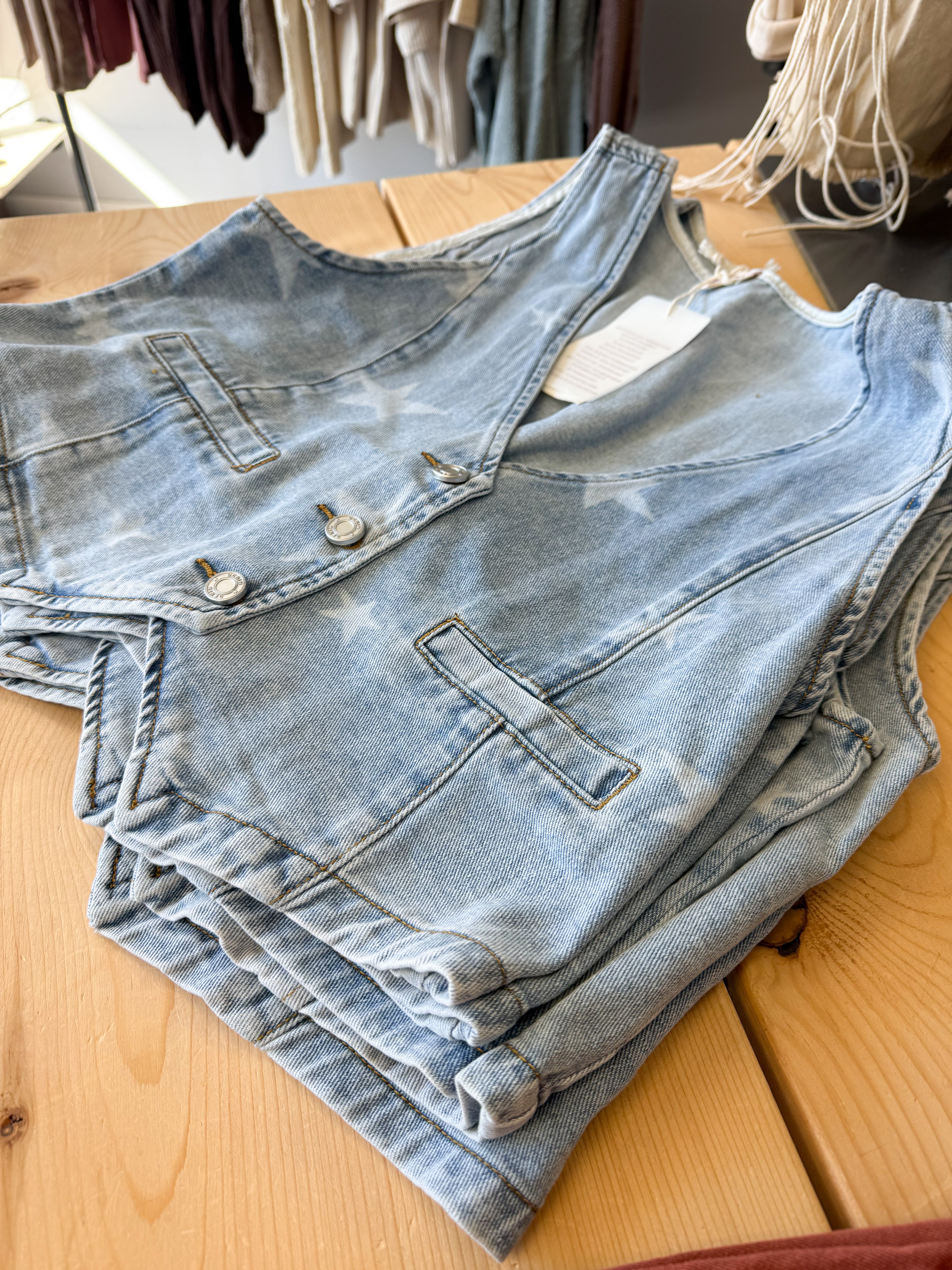 STAR PRINT BUTTONS FRONT DENIM VEST