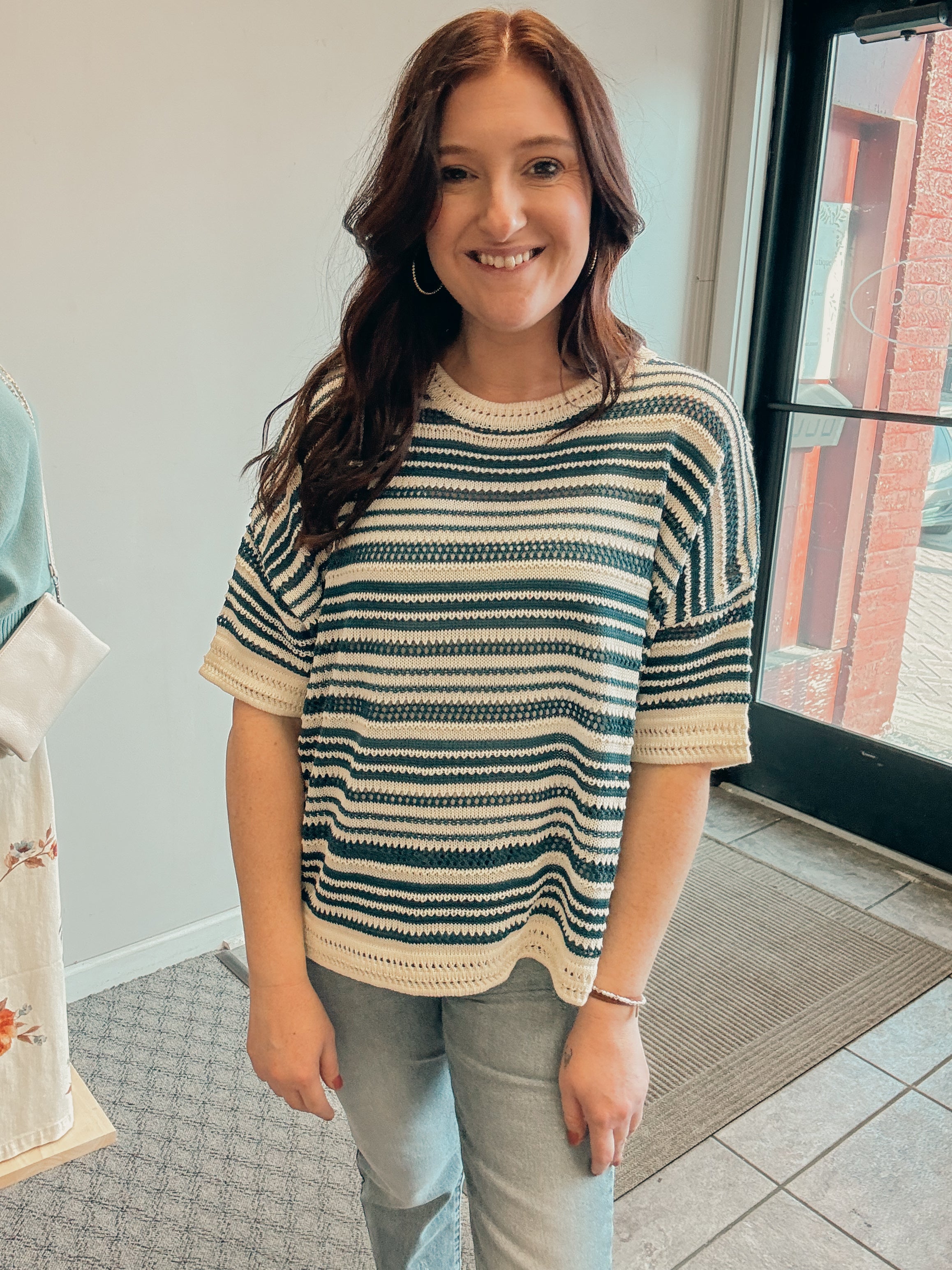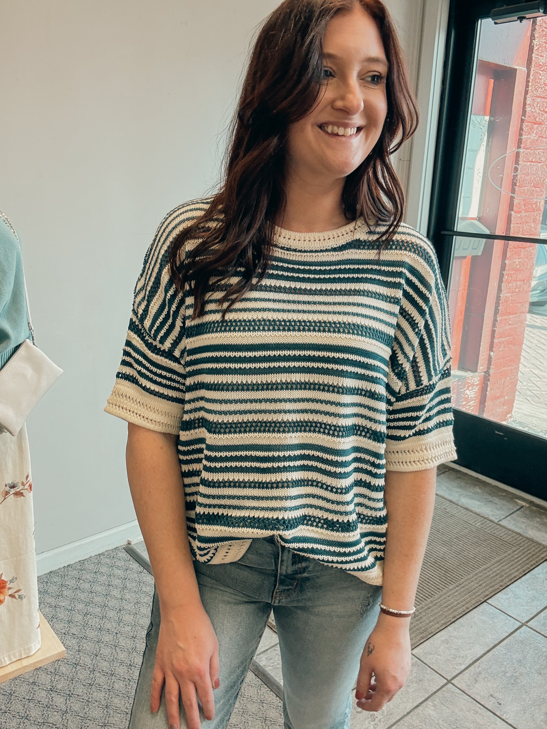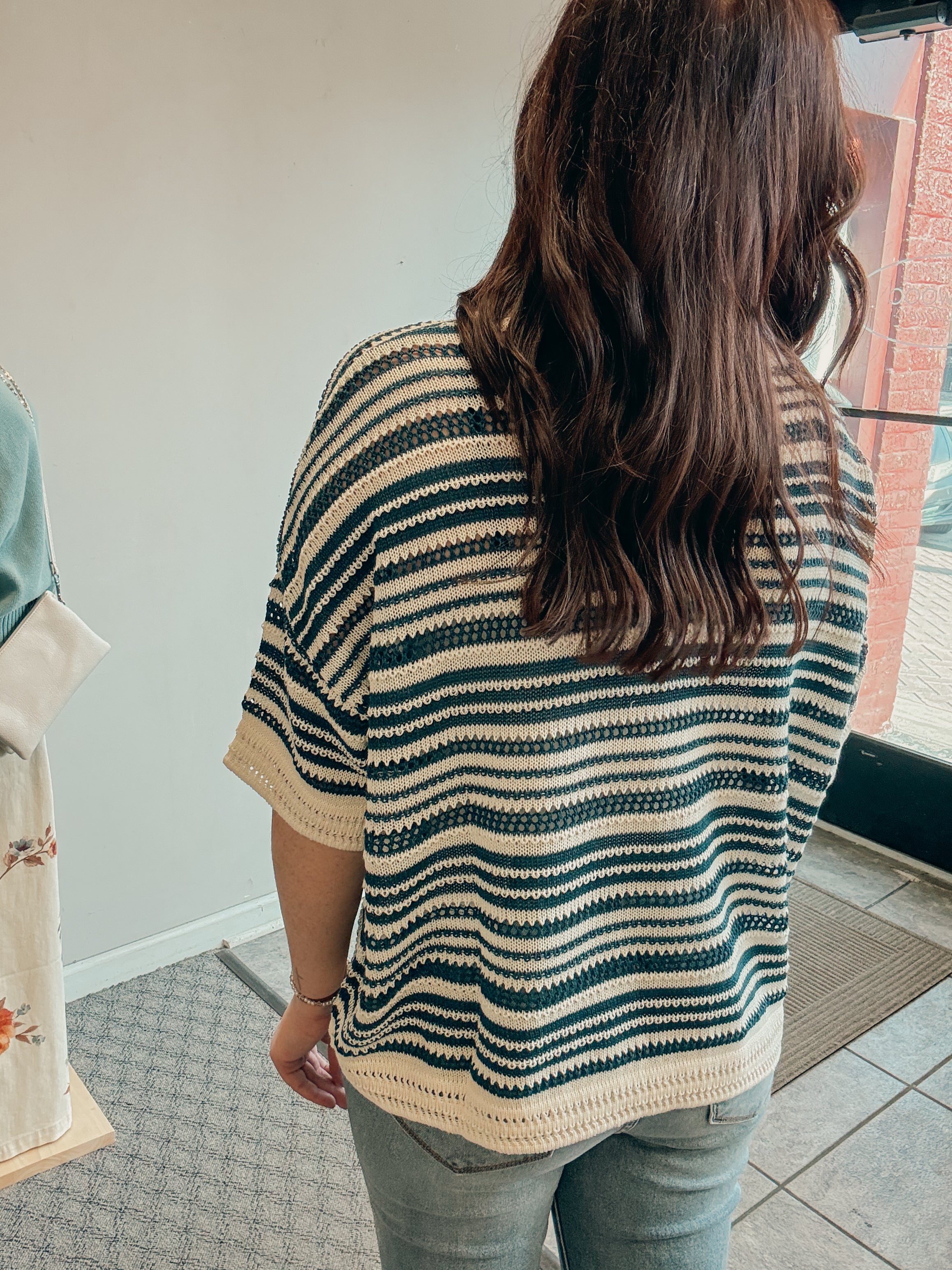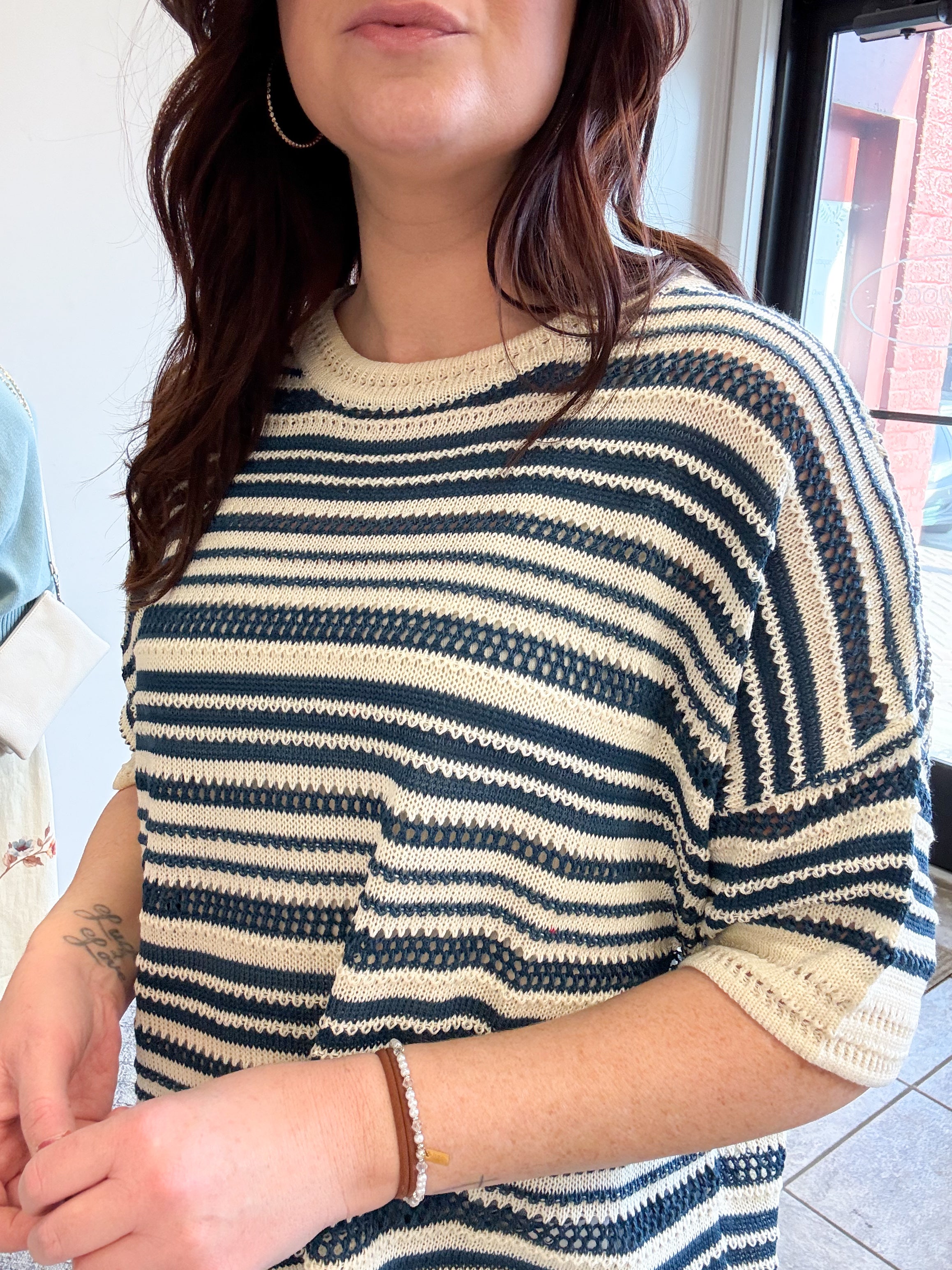 -striped lightweight pullover