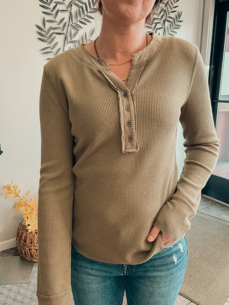Olive Waffle Henley
