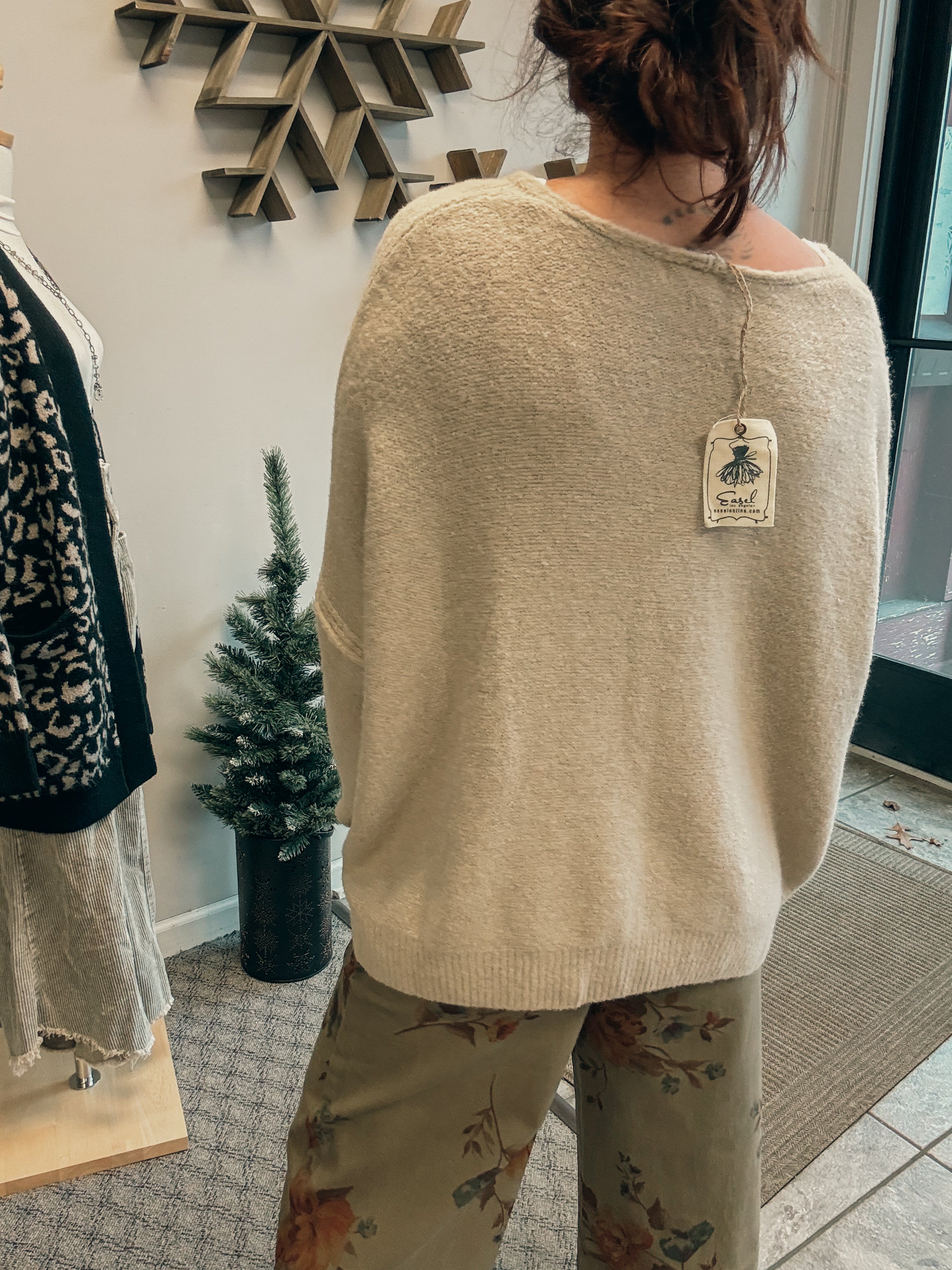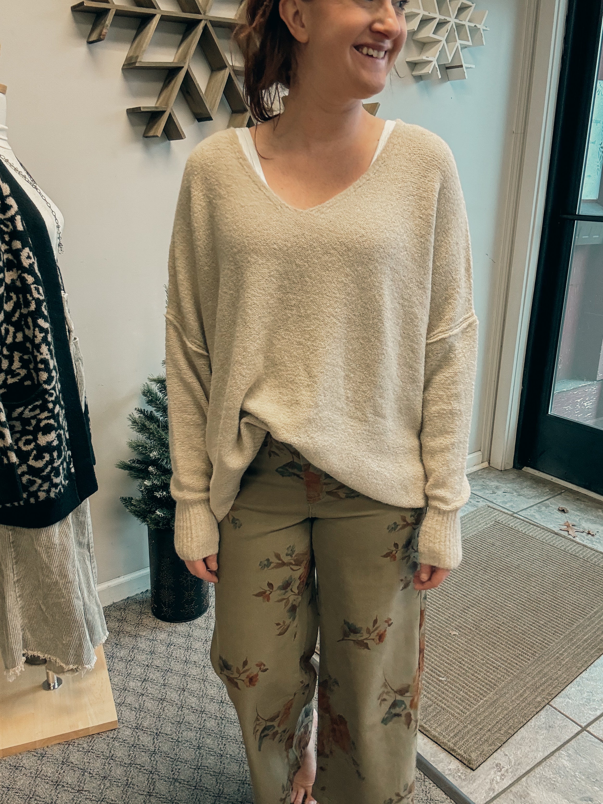 -oversized v neck sweater top