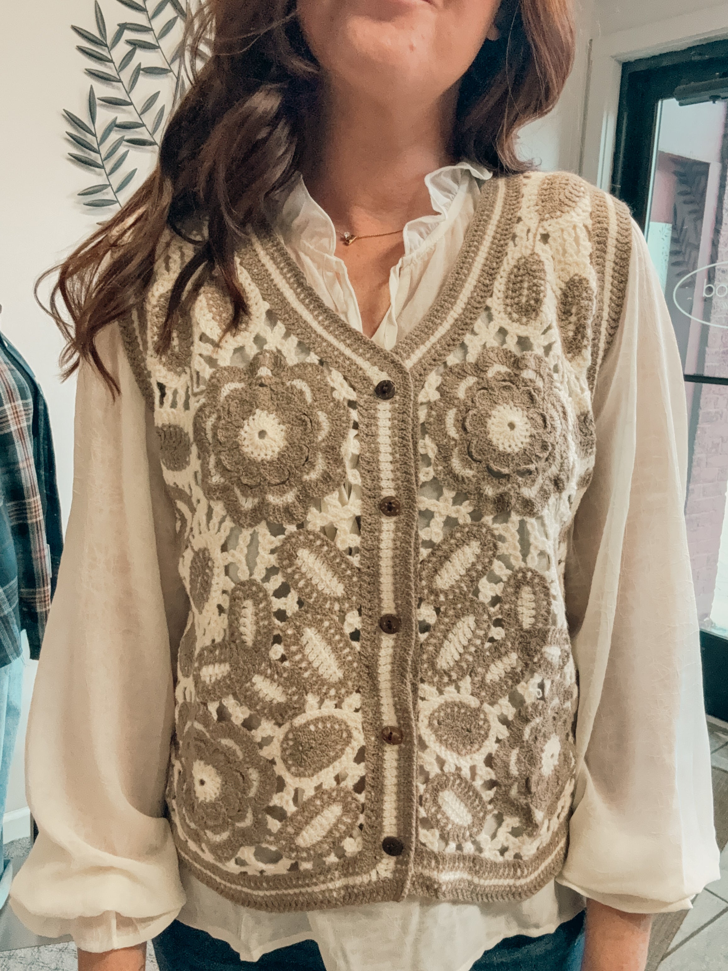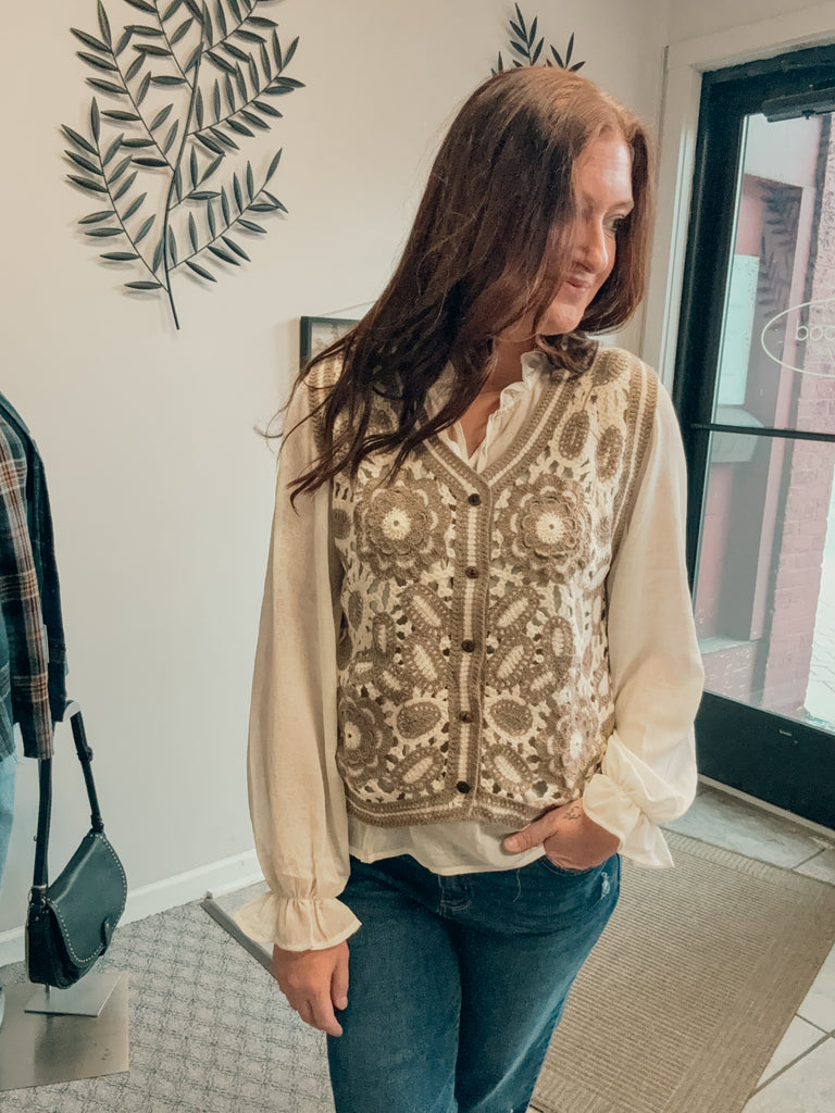 -2 piece blouse and crochet vest top
