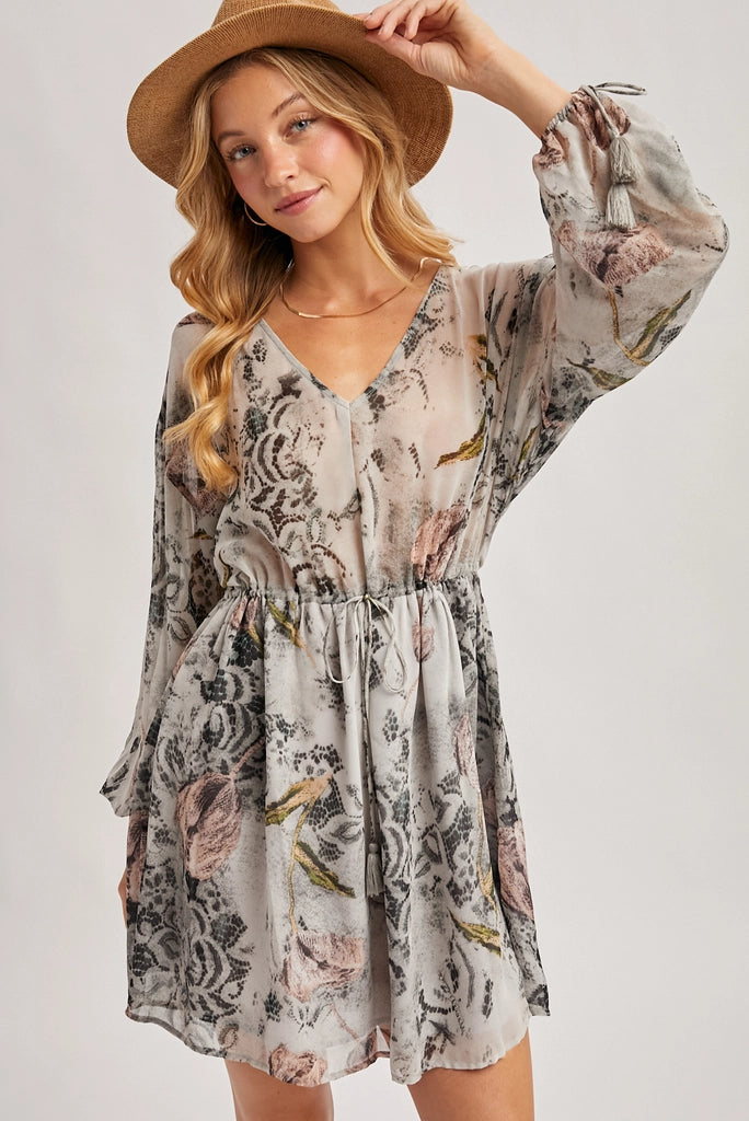 -floral chiffon mini dress