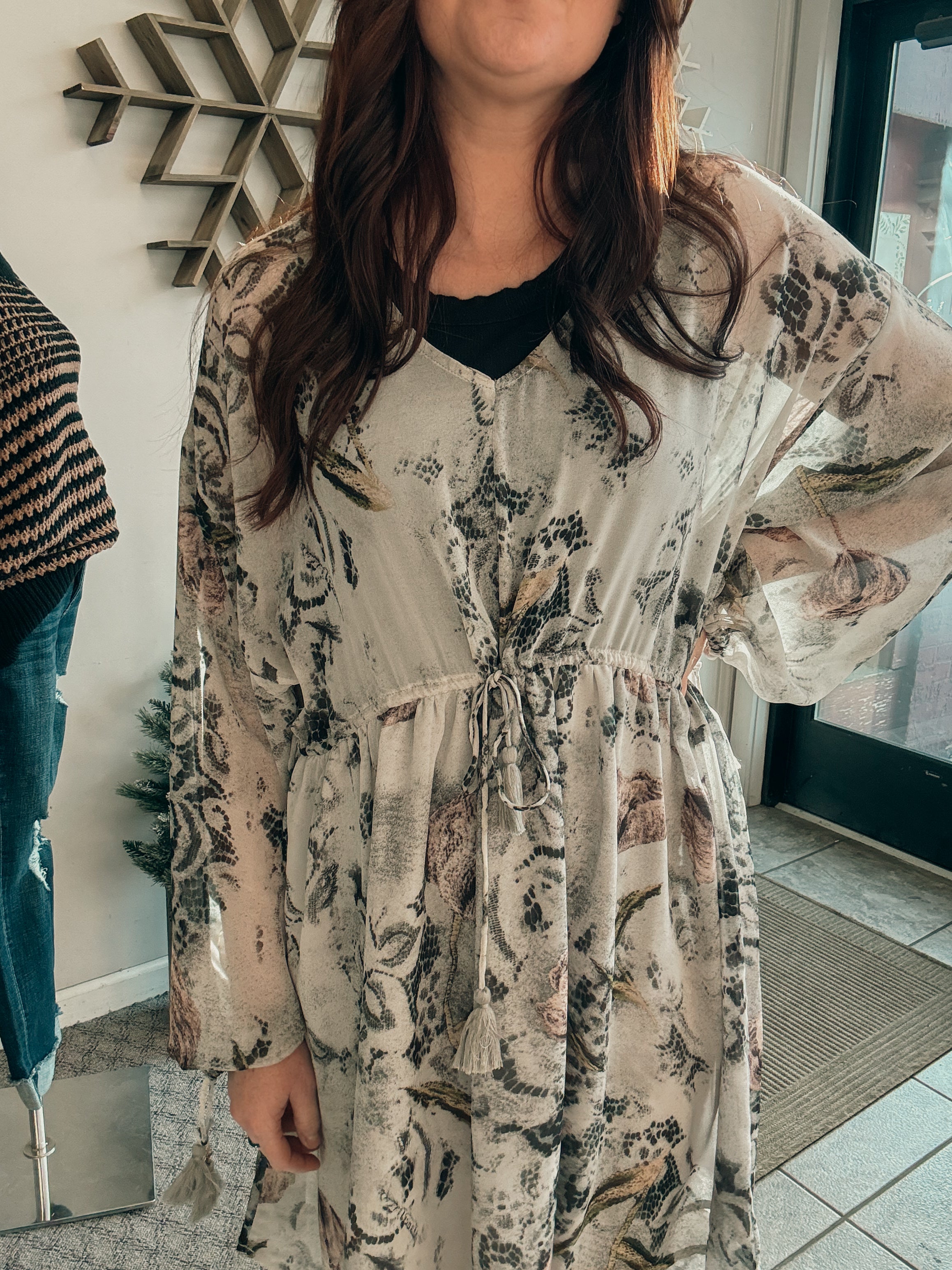 -tie waist and sleeves