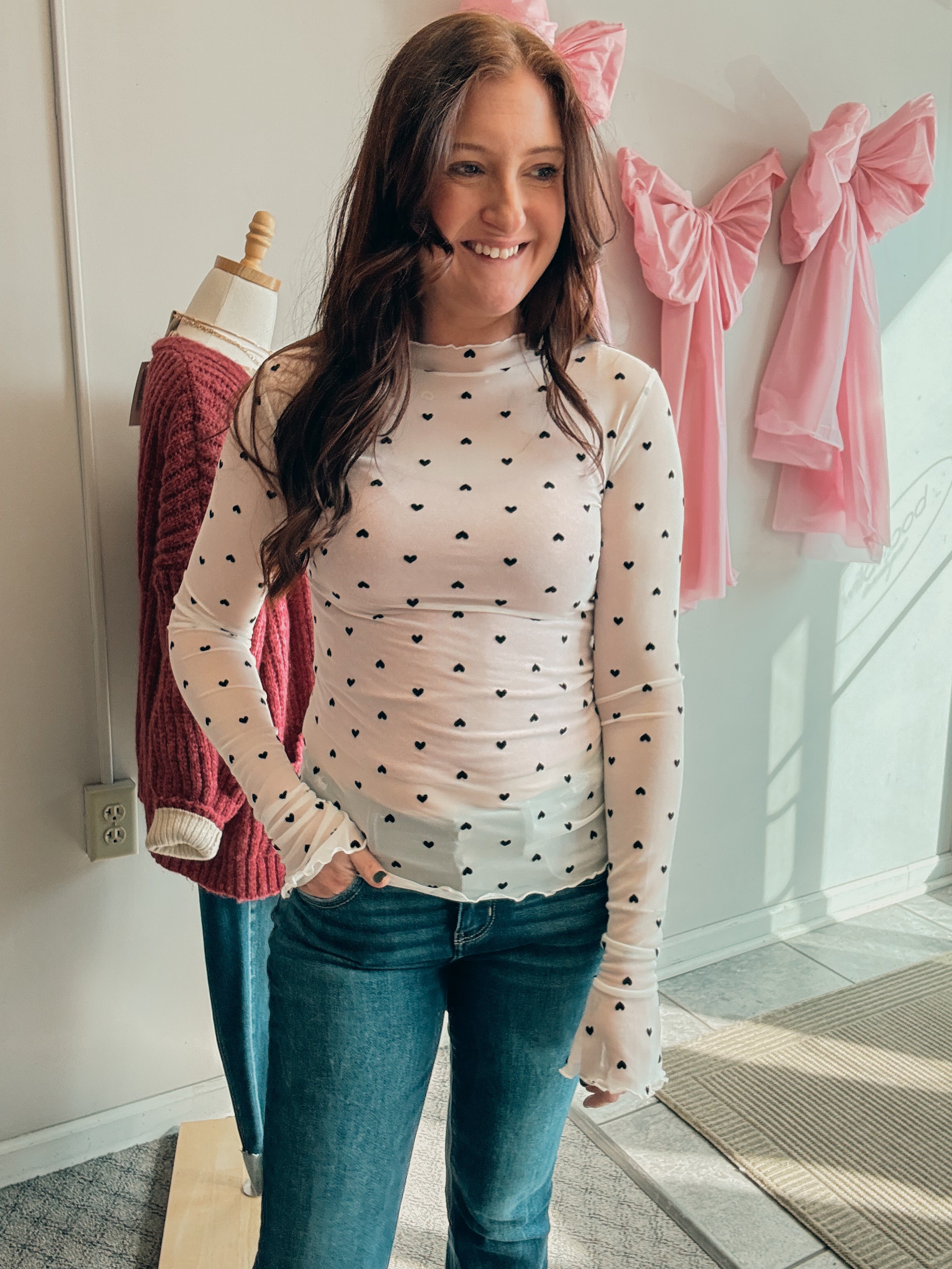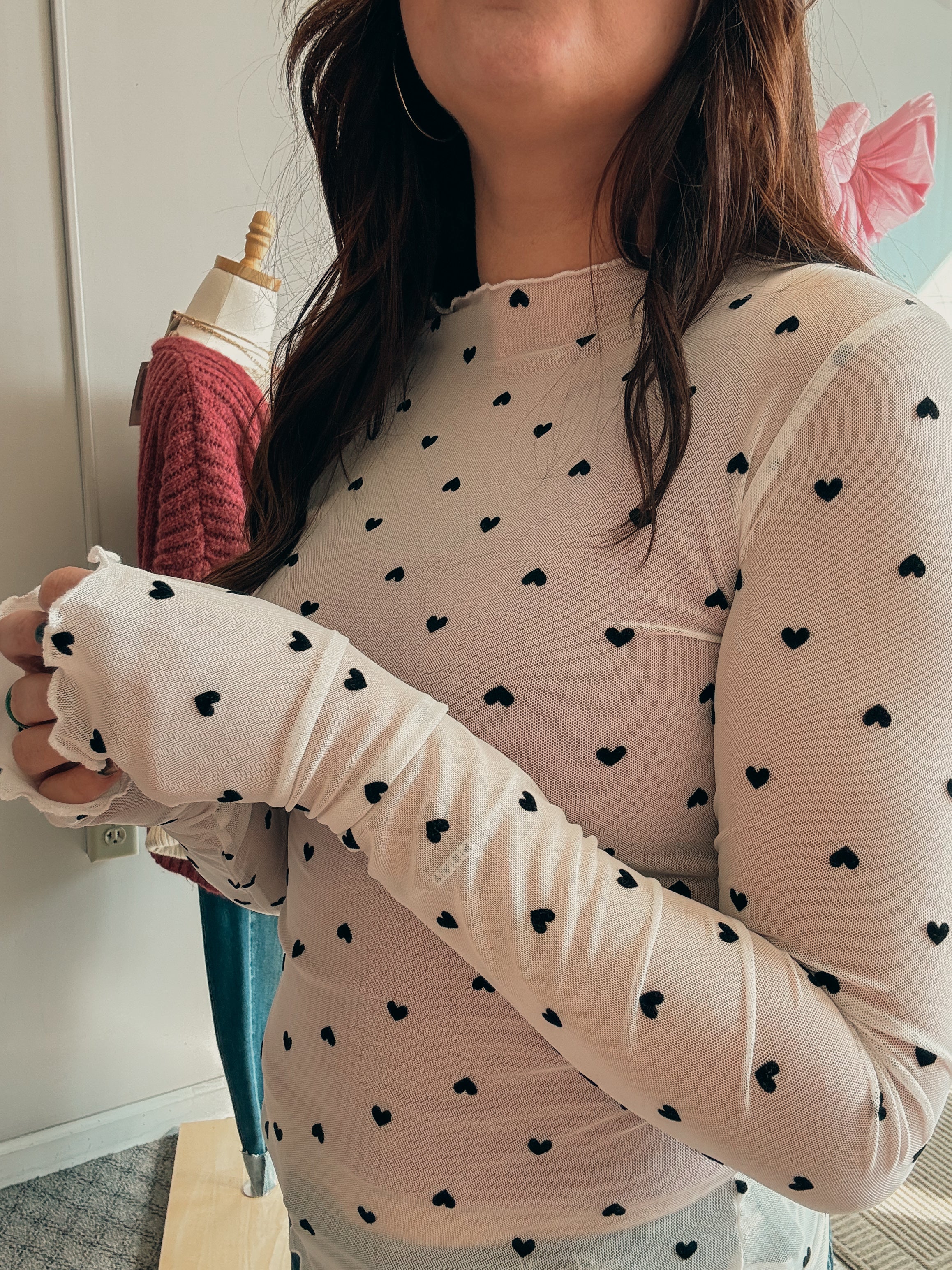 -sheer heart mesh top