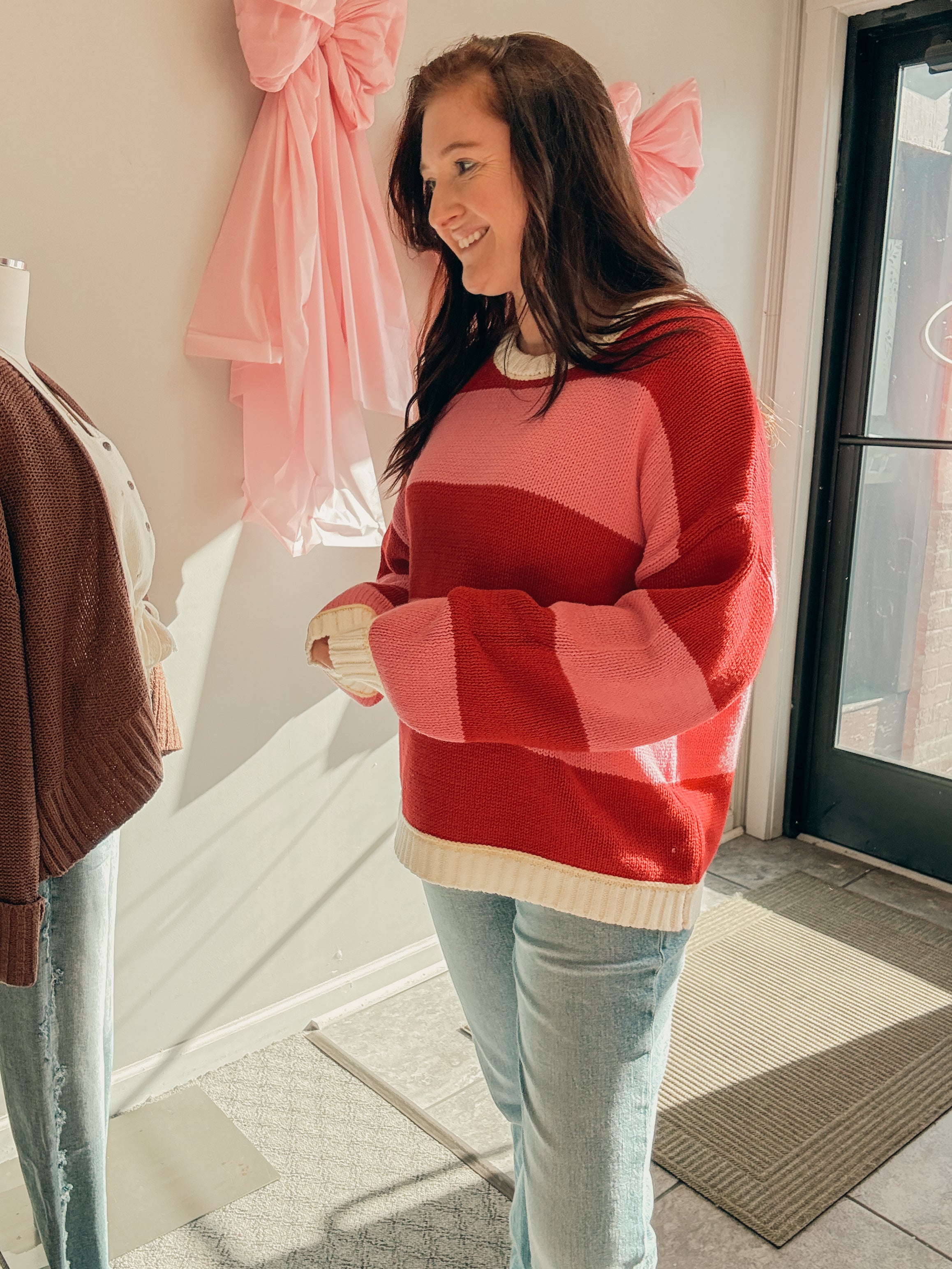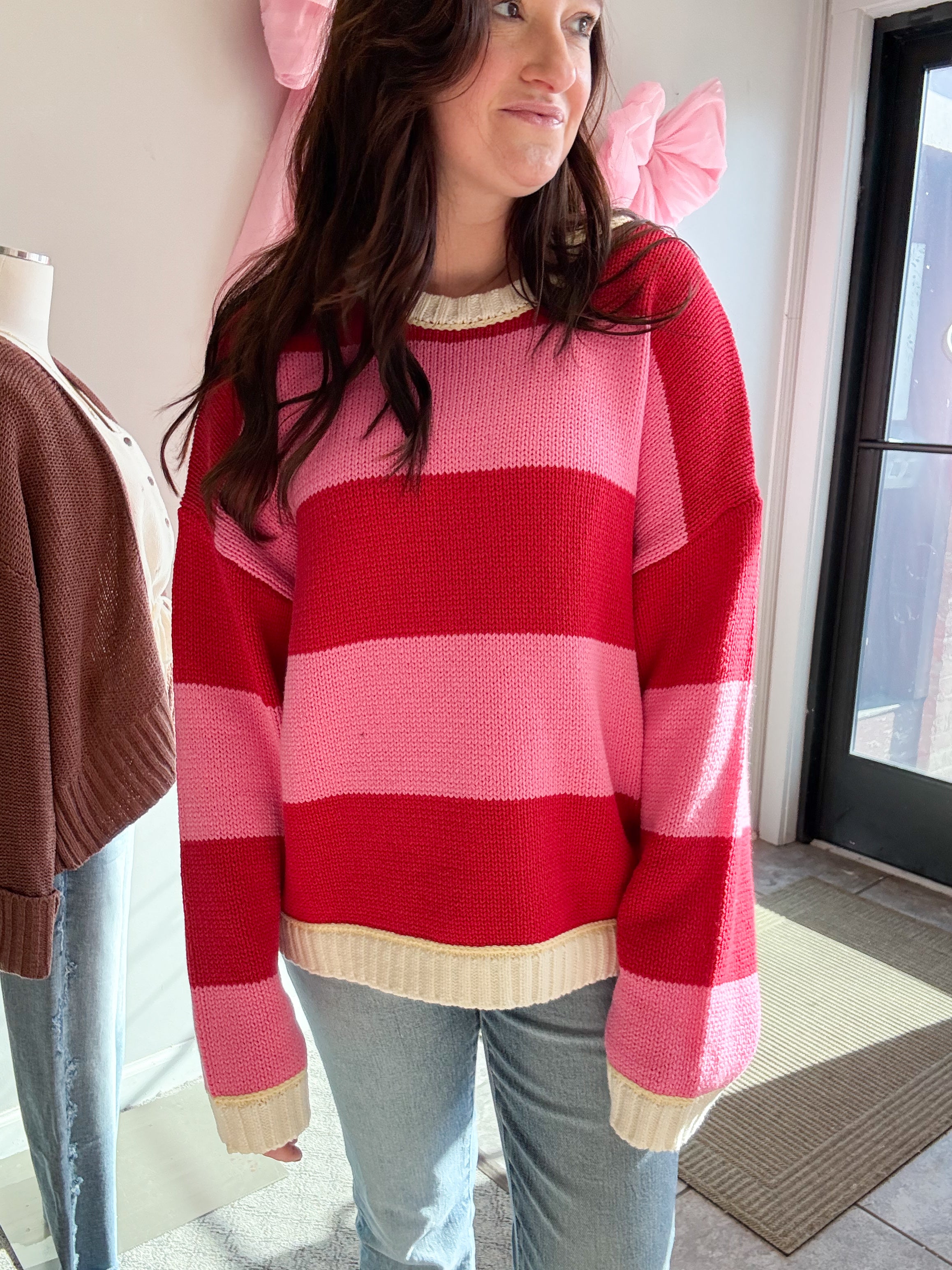 CREW NECK RELAXED OVERSIZED FIT MULTI COLOR MIX SWEATER TOP