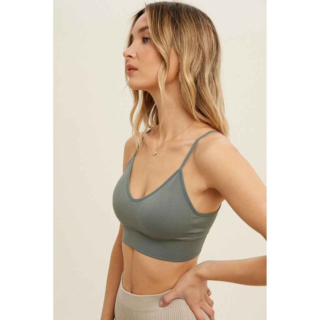 RIBBED SEAMLESS LOW BACK BRALETTE - REMOVABLE BRA PAD - ADJUSTABLE STRAPS AND LINED SELF: 90% NYLON, 10% SPANDEX LINING: 90% NYLON, 10% SPANDEX